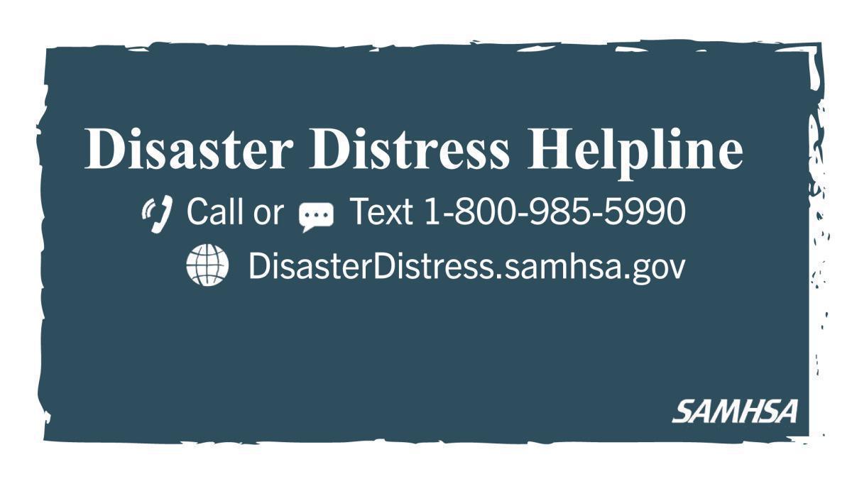 The Disaster Distress Helpline is a 24/7, confidential, multi-lingual crisis counseling and emotional support resource for survivors, responders, and anyone in the U.S. struggling with distress or other mental health concerns related to any natural or human-caused disaster.